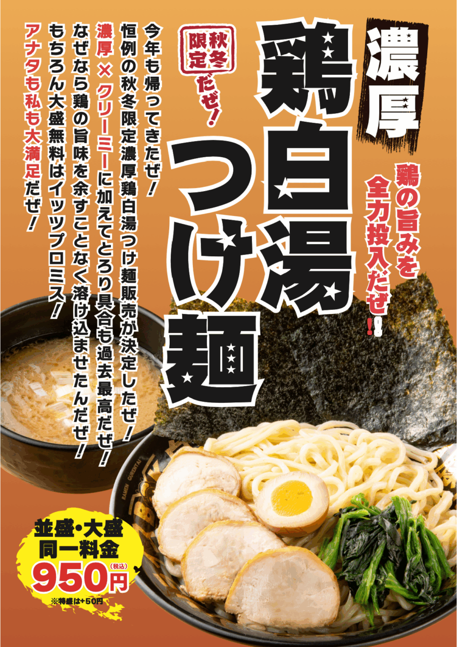 冬期限定の濃厚鶏白湯つけ麺販売が決定したぜ!!